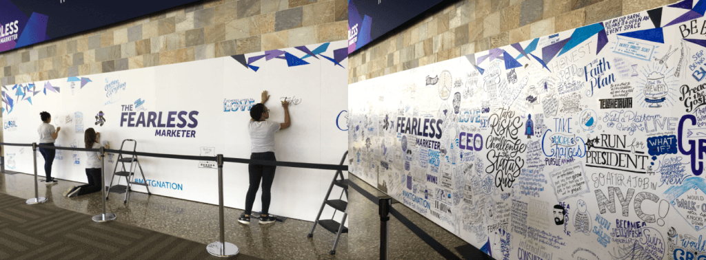 As a Marketing Nation Summit freshman, the grand, booming nature of this spectacle was a bit intimidating at first, as if they planned for this to be my first fearless test. The theme was complemented with fitting activities throughout the Moscone West space, my favorite being the large word mural of attendees’ answers to the question: What Would You Do If You Knew You Could Not Fail?
