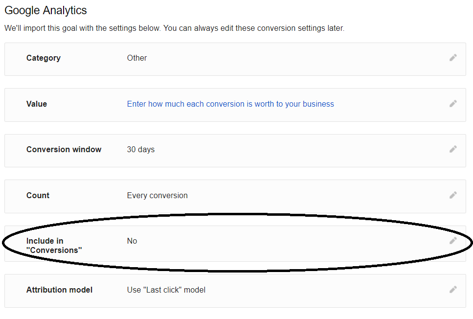 Then import the Google Analytics goal into Google Ads and set Include in “Conversions” to No.