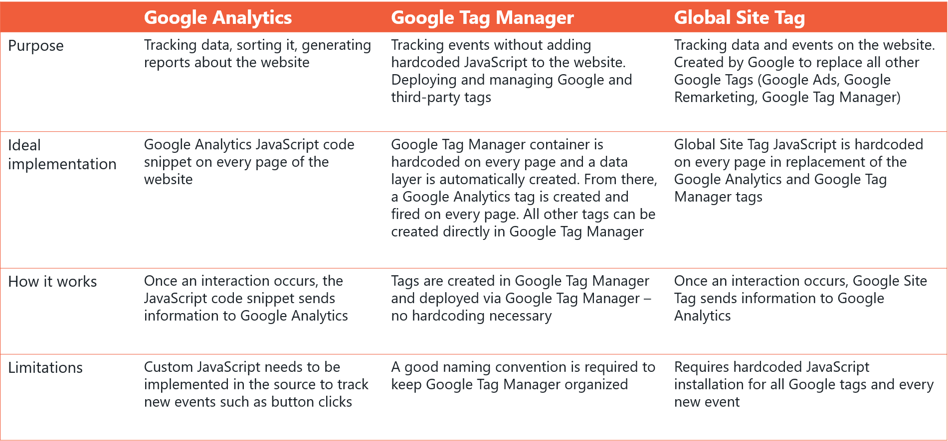 Overall, if you are implementing analytics tracking on your website for the first time and can’t use Google Tag Manager because you need complete control over the new tags that will be implemented on your website, go with Global Site Tag. Otherwise, Google Tag Manager is the way to go!